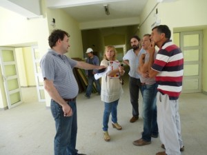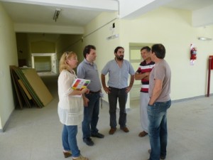 El secretario Gremial de AGMER, Manuel Gómez, y la secretaria de Prensa, Adriana Vilchez, acompañaron a la comunidad educativa en la recorrida por el nuevo edificio que se realizó esta mañana. También asistieron los docentes de la escuela Daniel Jacob y Adrián Sánchez, y el presidente de la Asociación Cooperadora, Juan Bornisen.