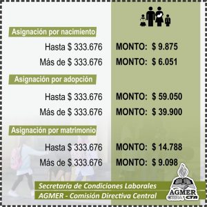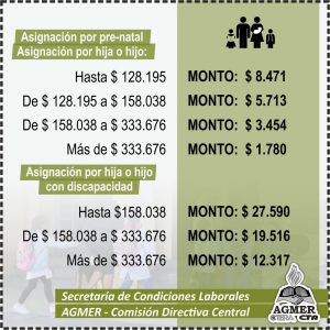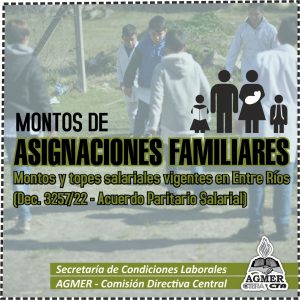 Desde la Secretaría de Condiciones Laborales de AGMER Central compartimos la actualización de los montos de Asignaciones Familiares, aprobados por el Decreto 3257 del Ministerio de Economía, Hacienda y Finanzas publicado el 22 de septiembre pasado, y los nuevos valores aprobados por el último Acuerdo Paritario de Salario.