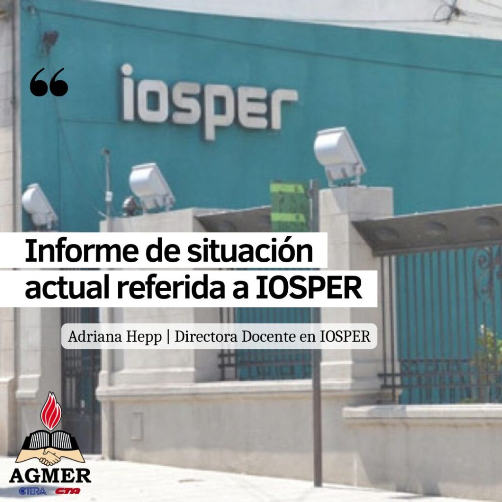 Compartimos un informe de la situación actual de IOSPER, de la compañera Adriana Hepp, directora docente en la obra social.