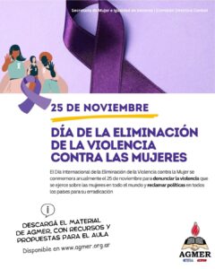 En el Día Internacional de la Eliminación de la Violencia contra las Mujeres, desde la Secretaría de Mujer e Igualdad de Géneros de AGMER convocamos a todas las docentes y los docentes a abordar esta problemática en nuestras escuelas, en el marco de la ESI.