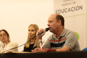 Fue Gustavo Blanc, nuestro Vocal Gremial en el Consejo General de Educación, el primero en brindar las palabras de bienvenida a las y los docentes presentes. Agradeciendo tanto a las y los miembros del Consejo con quienes se desarrolla el trabajo diario, como a la Comisión Directiva Central de AGMER, todas y todos los vocales y en especial al equipo de trabajo de la Secretaría de Educación, recordó la jornada de ayer, del Concurso de Titularización de Directivos pero de Nivel Inicial, Primario y sus modalidades, el cual se extendió hasta pasadas las 21 hs. con la asistencia constante del gremio para todas las consultas que fueron surgiendo.