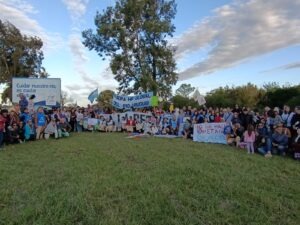 Representantes de AGMER Central, la Seccional Colón, un grupo de docentes del colectivo “Zurciendo litoral”, de Paraná, y compañeros y compañeras de distintos departamentos participaron activamente de esta manifestación, que reunió a una multitud para volver a expresar el rechazo de la comunidad al proyecto extractivista de HIF Global, de fuerte impacto sobre el río Uruguay y las comunidades ribereñas.