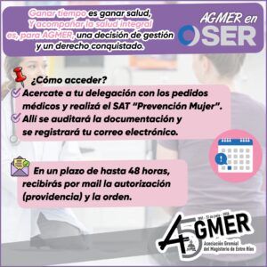 Porque “ganar tiempo es ganar salud” no es un slogan para nuestro sindicato. Desde la representación de AGMER en la Obra Social OSER compartimos información práctica para que todas las afiliadas de la provincia tengan conocimiento de este beneficio por medio del cual podemos hacer todos los controles en un mismo día y lugar, con una cobertura del 100%.