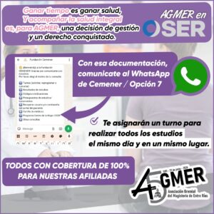 Compartimos información acerca del programa Cemener – Oser, por medio del cual todas las afiliadas a AGMER tienen 100 % de cobertura para realizarse, en un mismo día y lugar, los estudios ginecológicos de control.