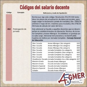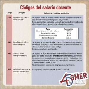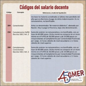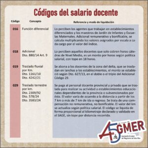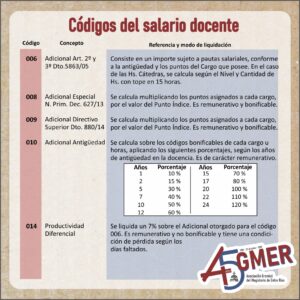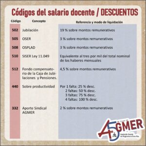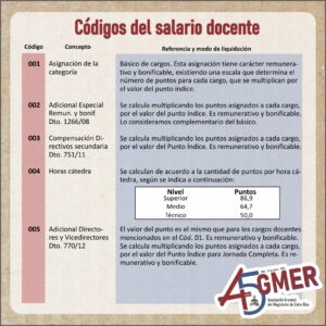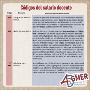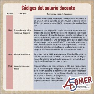 Con el visto del equipo de trabajo de la Secretaría de Condiciones Laborales de AGMER Central, compartimos información actualizada sobre los códigos de nuestro recibo de sueldo.