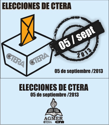 La Junta Ejecutiva de CTERA convocó a elecciones generales a los afiliados de los sindicatos de base para la cobertura de cargos de Junta Ejecutiva, Junta de Disciplina y Comisión Revisora de Cuentas. Se realizarán el 5 de septiembre de 2013, en el horario de 8 a 18.