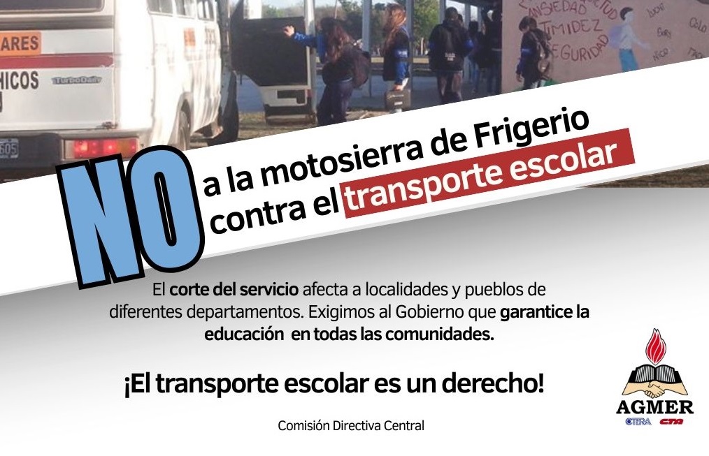 Las comunidades educativas de varios departamentos de la provincia y, al interior de cada uno de ellos, localidades y pueblos con sus comunidades escolares, se ven hoy seriamente afectadas por el corte del servicio de transporte escolar que hace posible el acceso al derecho social a la educación de centenares y miles de familias entrerrianas.